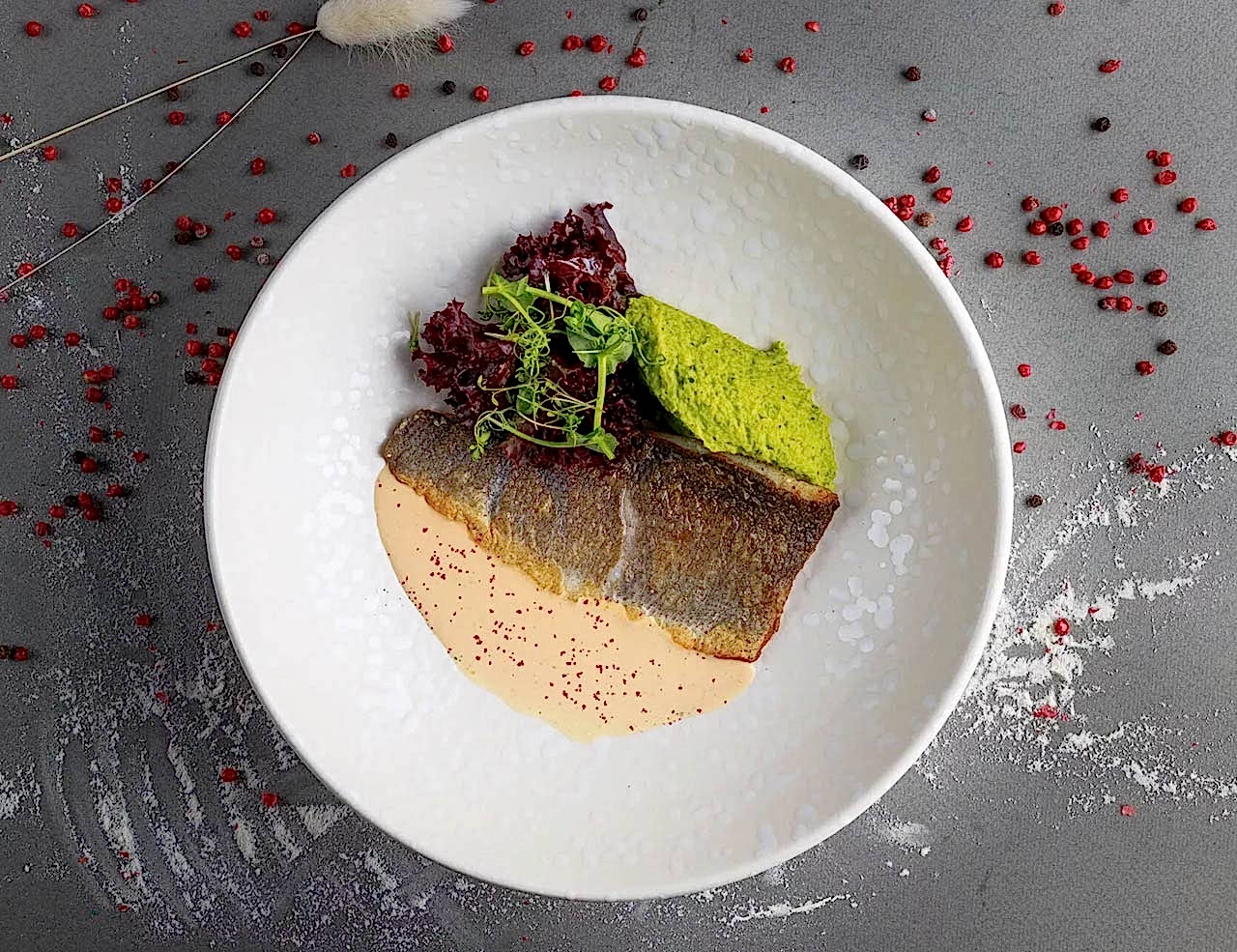 Филе сибаса с пюре из зеленого горошка и сливочным соусом - это изысканное и утонченное блюдо, которое сочетает в себе свежесть рыбы и нежность овощных вкусов. Филе сибаса, обжаренное на сковороде до золотистого колера, Pin-Up идеально хрустящую корочку, сохраняя при этом всю свою сочность и нежность. Подается рыба на мягкой подушке из сырного мусса, который добавляет блюду кремовую текстуру и легкий сливочный вкус. Пюре из зеленого горошка придает блюду свежесть и легкую сладость, создавая гармоничный контраст с рыбой. Сливочный соус завершает это кулинарное произведение, придавая дополнительную глубину и мягкость. Это блюдо станет настоящим украшением вашего стола и подарит наслаждение каждому, кто ценит утонченные вкусовые сочетания.