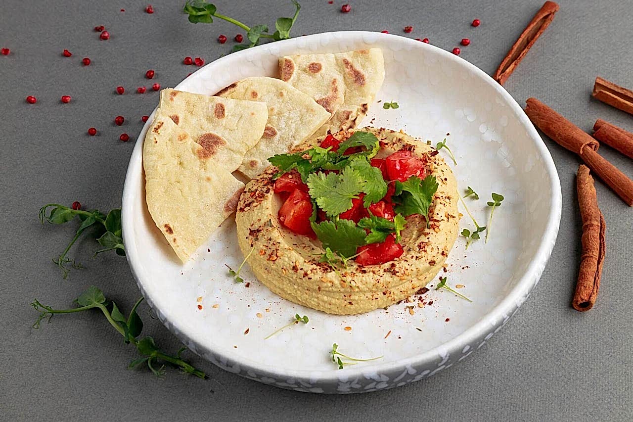 Хумус с томатами и питой - это простое, но невероятно вкусное блюдо, которое сочетает в себе насыщенные вкусы классического хумуса и свежесть томатов.