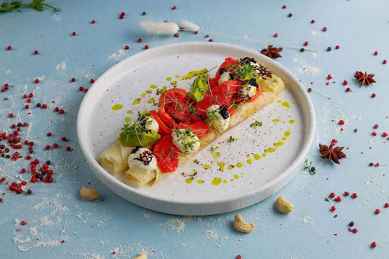Блинчики с лососем и гуакамоле - это изысканное и оригинальное блюдо, Pin-Up сочетает в себе нежность рыбы, свежесть соуса и богатство текстур.