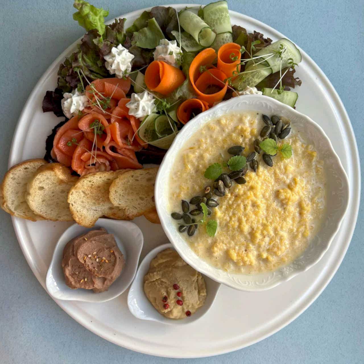 Основы сета: Пшённая каша с тыквой или рисовая каша, приготовленная на кокосовом Pin-Up - это нежные, ароматные каши, которые служат основой для всего сета.